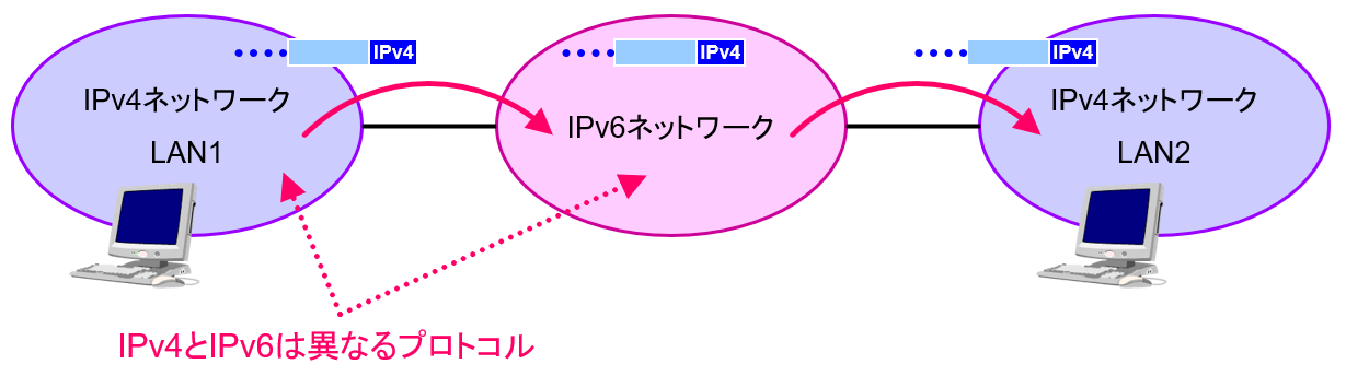 ・IPv6ネットワークを通れるのは、IPv6のパケットだけ