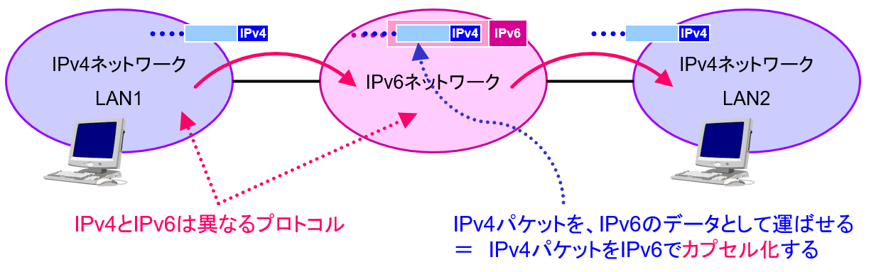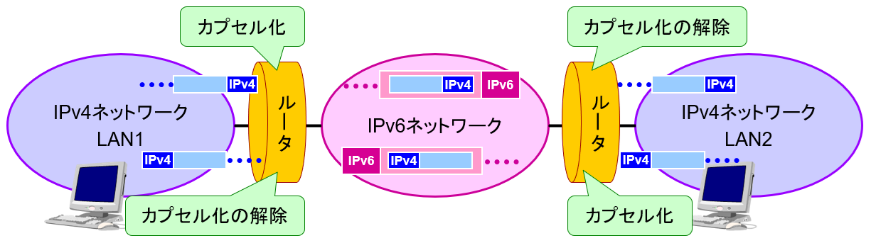 ・あるプロトコルのパケットを別のプロトコルのデータとして運ぶこと