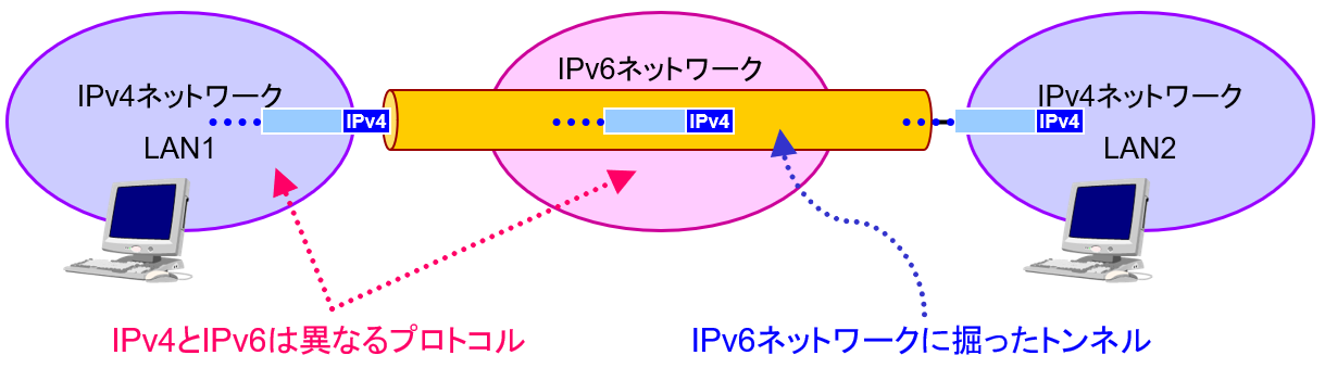 ・IPv6ネットワークに掘ったトンネルを通るように見える
