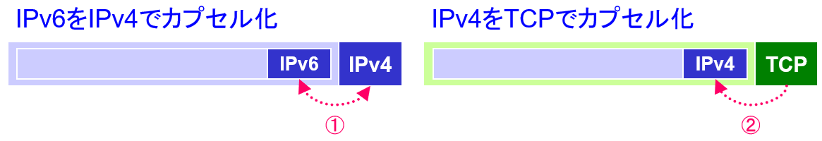 ・IPv6パケットに運ばれるIPv4パケット
