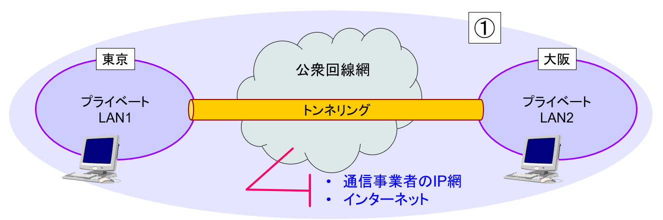・専用装置やルータ、ファイアウォールの付加機能 → 接続は拠点間