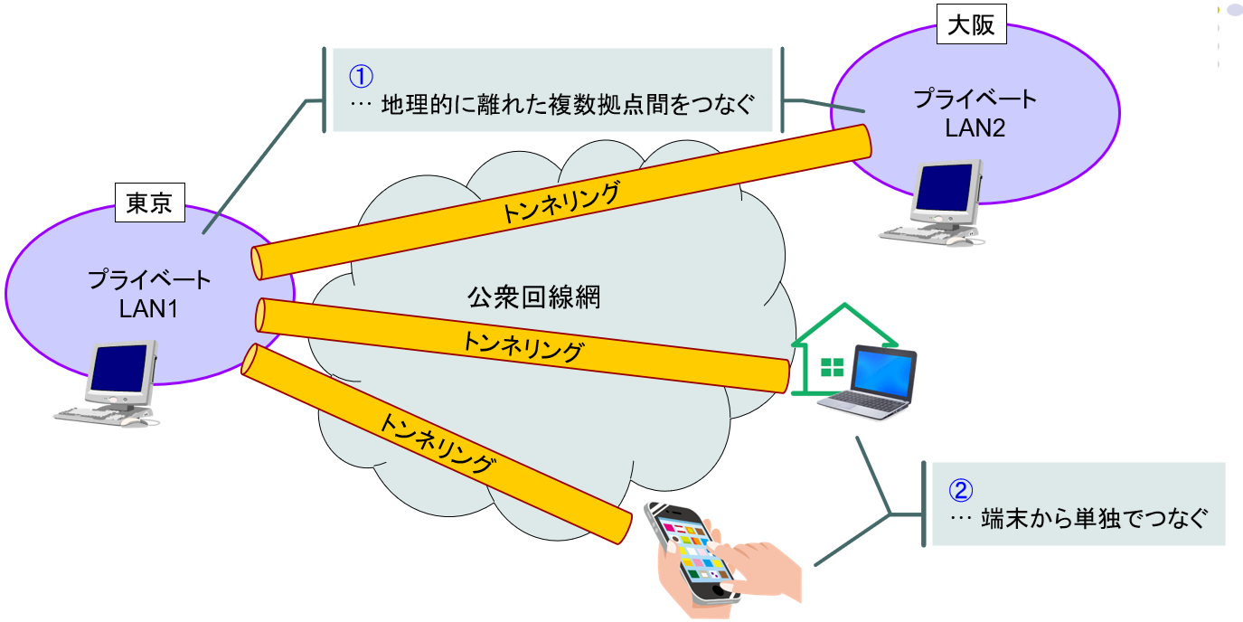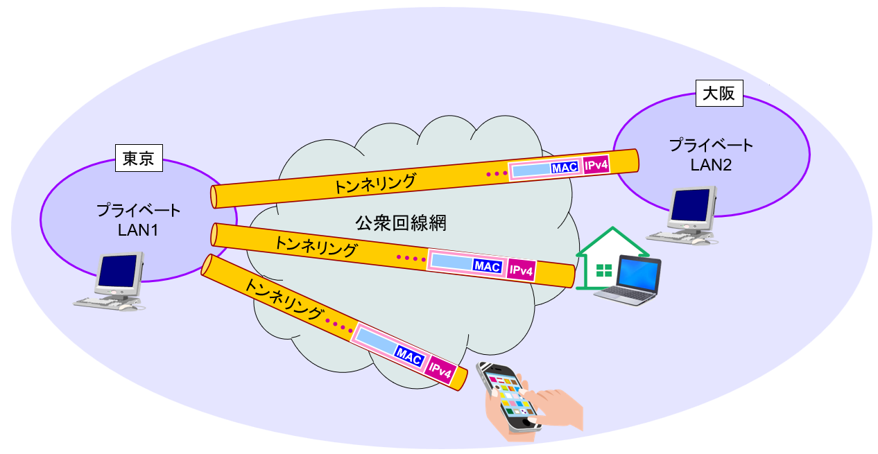 ・公衆回線を用いてプライベートLANを拡張する技術
