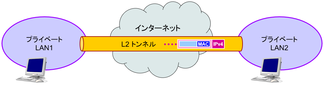 ・トンネル内をL2フレームが流れる、