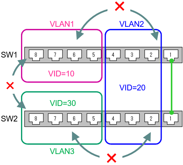 ・pvid: アンタグフレームを受信した際、内部フレームのタグに設定するVID