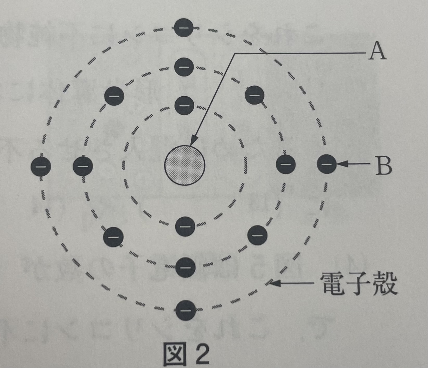 Aを(14 ), 最も外側の電子殻にあるBを(15 )という。