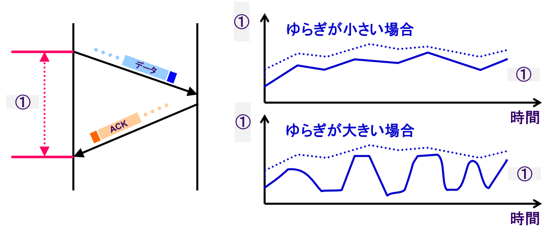 ・セグメントの往復時間(① : )の平均と、その (変動)を考慮して決定