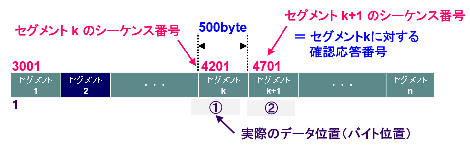 ・確認応答番号 ・・・ セグメントのデータ位置