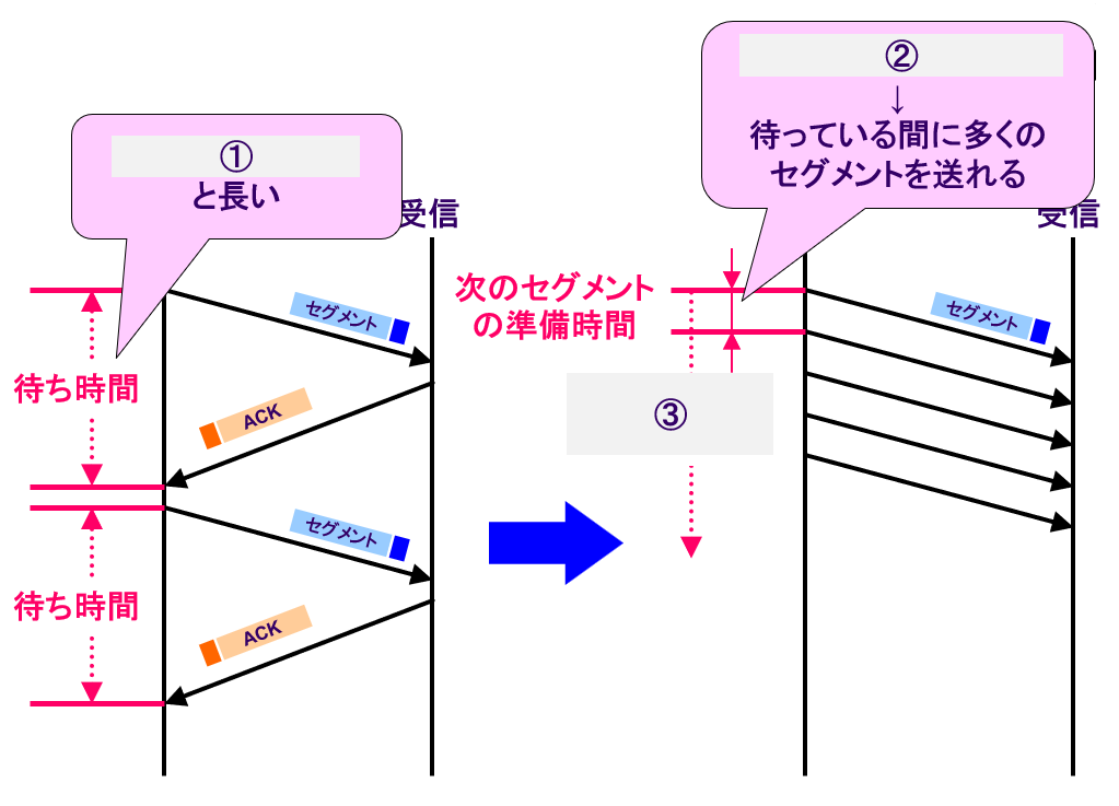 ・すぐに確認応答すると効率が (RTTが大きいとき顕著)