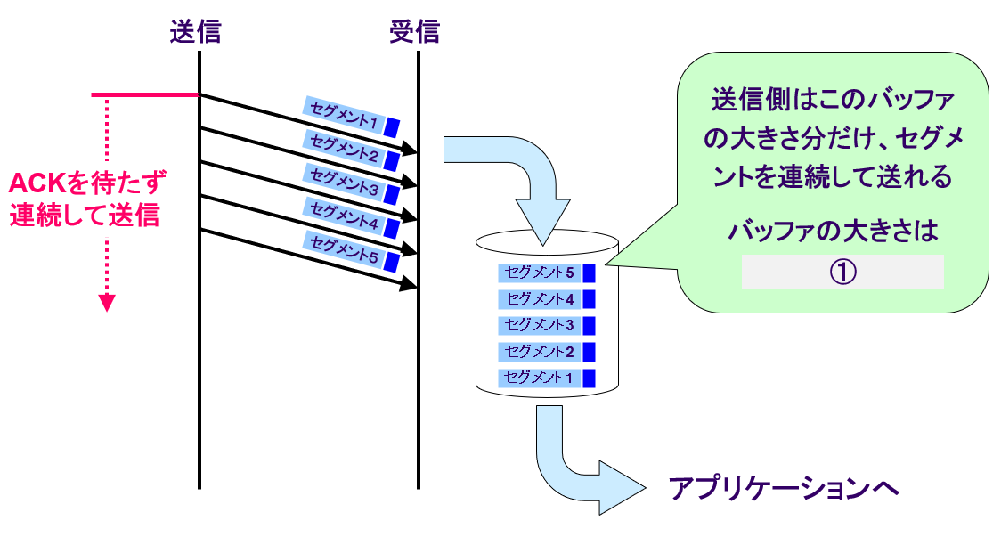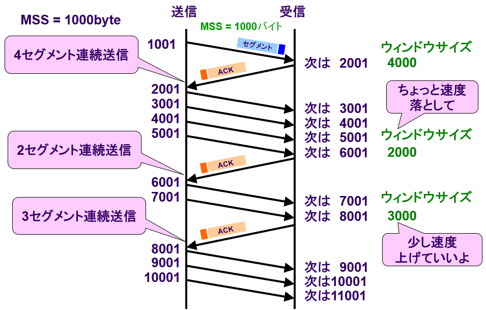 ・ウィンドウ制御では、 側の都合でセグメントを送信